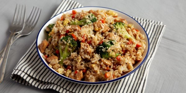 Описание: 🟤 Курица терияки с рисом и овощамиПриготовьте курицу в домашнем соусе терияки с жареным рисом по этому простому рецепту. Овощи можно брать любые: морковь, кабачок, горошек, кукурузу, стручковую фасоль и не только.✅ ИНГРЕДИЕНТЫ:📍 Рис – 300 г📍 Филе куриной грудки – 800 г📍 Крупный репчатый лук – 1 штука📍 Крупная морковь – 1 штука📍 Брокколи или другие овощи – 300 г📍 Растительное масло – 100 мл📍 Соль – по вкусу📍 Молотый чёрный перец – по вкусу📍 Чеснок – 3 зубчика📍 Молотый имбирь – ¼ ч. ложки📍 Соевый соус – 60 мл📍 Вода – 60 мл📍 Яблочный уксус – 1 ст. ложка📍 Сахар – 3 ст. ложки📍 Яйца – 2 штуки✅ ГОТОВКА: 1 ч.🥣 Поставьте вариться рис до полной готовности.🥣 Тем временем нарежьте кусочками курицу, а лук и морковь — мелкими кубиками. Брокколи или другие овощи тоже нарежьте.🥣 Измельчите чеснок. Смешайте с имбирём, соевым соусом, водой, уксусом и сахаром.🥣 В вок или глубокую сковороду влейте часть масла. Обжаривайте овощи несколько минут на большом огне, выложите на тарелку.🥣 Влейте в сковороду ещё масла, положите курицу, приправьте солью и перцем. Готовьте 5 минут, помешивая. Выложите к овощами.🥣 Добавьте ещё масла, разбейте яйца и перемешайте. Всыпьте варёный рис и обжаривайте 3 минуты.🥣 Влейте соус терияки, перемешайте. Добавьте курицу с овощами, перемешайте и немного прогрейте.