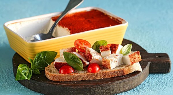 Описание: 🟦 Брынза из творогаРецепт брынзы из творога, конечно, далёк от аутентичного, и, тем не менее, готовый «сыр» очень похож на оригинальный и текстурой, и вкусом. Если же использовать хорошее, то есть, натуральное «сырье», то продукт получится еще и полезным. В общем, попробовать точно стоит! Сам процесс приготовления несложный и очень быстрый: на весь процесс уйдёт менее получаса. Однако брынза из творога потребует времени на застывание (в составе есть желатин), поэтому учитывайте этот момент, если планируете подавать «сыр» к завтраку или обеду.✅ Ингредиенты:📍 Творог 5% – 300 г📍 Молоко – 150 мл📍 Желатин пищевой – 10 г📍 соль – на кончике ножа📍 Чили хлопья – по вкусу📍 Паприка сладкая молотая – 1 ч.л.✅ Готовка: 2 ч. (+ 20 мин. доп. времени)🥣 Подготовьте продукты для брынзы. Если творог слишком влажный, поместите его в два слоя марли, сформируйте из неё узелок и поместите под пресс на несколько часов.🥣 Желатин для брынзы замочите в холодной воде на 10 минут. Соль растворите в молоке и поставьте на огонь. Желатин отожмите и добавьте в молоко. Помешивая, нагревайте, чтобы он растворился. До кипения не доводите.🥣 Снимите с огня молоко с желатином и солью. Добавьте в ёмкость с творогом. Пробейте получившуюся смесь погружным блендером до получения массы однородной консистенции.🥣 Добавьте в основу домашней брынзы хлопья острого перца чили. Ещё раз перемешайте кулинарной лопаткой. Перелейте массу в пластиковый контейнер, подходящий по размеру.🥣 Посыпьте творожную массу с желатином молотой сладкой паприкой. Закройте контейнер крышкой и уберите в холодильник. Дайте брынзе застыть (это может занять 2–4 часа).🔥 СОВЕТ. Если для приготовления творога вы возьмёте обезжиренные творог и молоко, то готовый продукт будет диетическим. Сделать его вкус более ярким помогут те же специи, что используются в данном рецепте, или любые другие, по вашему усмотрению.🔥 КСТАТИ. Такую брынзу из творога можно использовать традиционным для этого молочного продукта образом: приготовления бутербродов, салатов или подавать в чистом виде, как закуску.