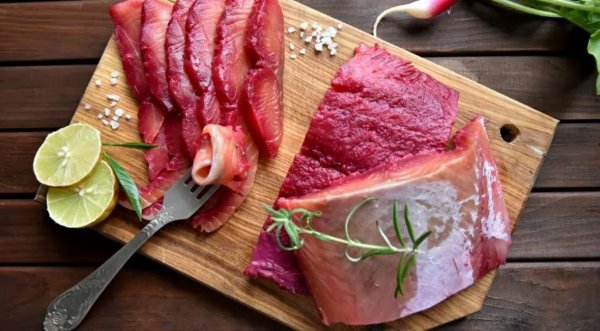 Описание: 🟦 Свекольный гравлакс из лососяГравлакс из лосося - популярное скандинавское блюдо. Свекольный гравлакс из лосося от Джейми Оливера не только вкусен но и эффектно смотрится.✅ Нужно:📍 филе лосося – 1 кг📍 соль морская – 1 ст.л.📍 сахар тростниковый – 0,5 ст.л.📍 коньяк – 1 ст.л.📍 свекла натертая – 2 ст.л.📍 хрен – 1 ст.л.📍 цедра от половины лимона📍 зелень укропа – 0,5 пучка✅ Готовка: 10 мин. (+ 48 ч. доп. времени)🥣 Для приготовления свекольного Гравлакса подготовить необходимые продукты: Филе лосося, соль, сахар, коньяк, хрен, свеклу, цедру лимона. Подготовленное рыбное филе положить в контейнер. Сверху рыбу посолить, добавить сахар. Нанести на рыбу смесь тертой сырой свеклы, хрена, зелени, лимонной цедры. Влить коньяк. Руками равномерно распределить смесь по всей поверхности куска.🥣 Накрыть рыбу пленкой и сверху положить груз. Хранить рыбу в холодильнике в течение двух дней. По истечении двух дней удалить с рыбы свекольную смесь и обтереть кусок салфеткой. Гравлакс готов🔥 НА ЗАМЕТКУ. В данном рецепте хрен можно использовать свежий или консервированный.