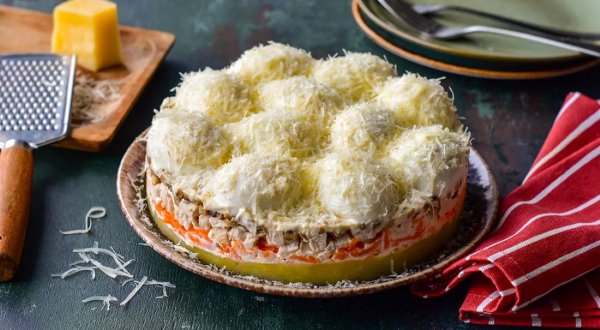 Название: Салат "Снежные сугробы" с курицей и грибами