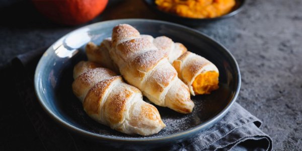 Описание: 🟠 Простые домашние круассаны с тыквойОтлично подойдут к чашке ароматного чая или кофе!✅ Нужно:📍 Тыква – 400 г📍 Слоёное тесто – 450 г📍 Крем-сыр – 230 г📍 Сахар – 100 г📍 Молотая корица – ½ ч. ложки📍 Яйцо – 1 штука✅ Готовка: 1 ч. 30 мин.🥣 Тыкву нарежьте небольшими кубиками. Выложите в обычный пакет или рукав для запекания, влейте немного воды, положите на тарелку. Оставьте маленькое отверстие или сделайте несколько проколов.🥣 Поставьте в микроволновку на полную мощность примерно на 8 минут.🥣 Слейте лишнюю жидкость, а тыкву пюрируйте блендером. Остудите.🔥 У вас получится примерно 350 г тыквенного пюре.🥣 Раскатайте тесто и разрежьте примерно на 16 треугольников. Застелите противни бумагой для выпечки.🥣 Смешайте тыквенное пюре, размягчённый сыр, сахар и корицу.🥣 Смажьте тесто начинкой. Скрутите, начиная с широкой стороны.🥣 Взбейте яйцо и смажьте тесто с помощью кулинарной кисточки.🥣 Отправьте запекаться в духовку, разогретую до 190 ℃, примерно на 15 минут, пока круассаны не подрумянятся.
