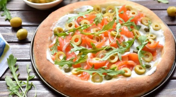 Описание: 🔷 Белая пицца с лососем, оливками и каперсамиЧасто в жару мы обходимся очень лёгкими перекусами в течение дня. Попробуйте приготовить необычную белую пиццу. Процессу выпекания подвергается только лепёшка из теста, начинка же не подвергается термической обработке и выкладывается на уже готовую основу.📌 Нужно:🔹 мука – 525 г🔹 дрожжи – 3 г🔹 масло оливковое – 30 мл🔹 вода – 360 мл🔹 соль – 10 г🔹 сахар – 20 г🔹 сметана – 100 г🔹 лосось – 200 г🔹 оливки – 10 шт.🔹 каперсы – 1 ст.л.🔹 рукола – половина пучка📌 Готовка: 12 ч. (+ 24 ч. доп. времени)🟩 Подготовить продукты для приготовления теста. Муку просеять через мелкое сито.🟩 Соединить соль и муку, добавить дрожжи и перемешать сухие ингредиенты. В тёплой воде растворить сахар, влить оливковое масло.🟩 Соединить жидкие и сухие составляющие. Перемешать их, чтобы мука полностью впитала влагу.🟩 Выложить тесто на столешницу и продолжить месить тесто. Поначалу оно очень липкое, в процессе замеса рекомендую смочить руки растительным маслом. Тесто вымешивать методом растягивания и складывания минут 7–10.🟩 По окончании процесса тесто станет менее липким. Сложить его конвертом.🟩 Выложить в миску, смазанную растительным маслом, для подъёма и накрыть пищевой плёнкой. Через 15 минут достать тесто, руками расправить его в прямоугольник и снова сложить конвертом. Повторить процедуру ещё дважды с интервалом в 15 минут. Хранить тесто в холодильнике 24–48 часов.🟩 Перед использованием достать тесто из холодильника. Разделить его на части. Каждую часть «округлить» и оставить для расстойки, накрыв кухонным полотенцем.🟩 Каждый шар раскатать в лепёшку, распределив по форме. Края лепешки должны быть толще, чем середина. Выпекать тесто 12 минут в разогретой до 250°C духовке. Смазать центр горячей лепёшки сметаной. Выложить ломтики лосося, оливки, каперсы и руколу.