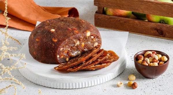 Описание: 🔶 Яблочный сырГотовьте яблочный сыр, как только яблоки созреют, и ешьте в любое время года! Для более яркого вкуса в яблочный сыр в домашних условиях часто добавляют молотую корицу и другие сладкие пряности, например, бадьян. А для фактурности — орехи. Можно сделать яблочный сыр с грецкими орехами, а можно с фундуком — кому что нравится. Важно, чтобы орехи были очень свежие, ведь они довольно быстро портятся сами и могут испортить вкус продукта. А вот яблоки для рецепта подойдут любые, даже с пороками — просто вырежьте эти места.📌 Нужно:🔹 Яблоки – 3 кг🔹 Корица молотая – 2 ч.л.🔹 Сахар-песок – 600 г🔹 Орехи – 100 г📌 Готовка: 🟩 Яблоки вымойте, оботрите полотенцем. Разрежьте плоды на четвертинки, удалите плодоножки и семенные коробочки. Не очищайте яблоки, поскольку именно в кожице и непосредственно под ней содержится максимальное количество пектина, который позволит «сырной» массе загустеть. Нарежьте яблоки тонкими пластинами.🟩 Положите нарезанные яблоки в кастрюлю и пересыпьте сахаром. Отставьте заготовку на несколько часов, чтобы выделился сок. Можно оставить под крышкой яблоки с сахаром на ночь, а утром продолжить приготовление яблочного сыра.🟩 Когда выделится достаточное количество сока, поставьте кастрюлю с яблоками на огонь, доведите образовавшийся сироп до кипения. Уменьшите огонь до слабого и варите массу полчаса, активно помешивая, чтобы она не пригорела.🟩 Часть яблок — 5-6 столовых ложек — отложите в миску, оставшиеся измельчите погружным блендером и продолжайте варить на слабом огне в течение 2-3 часов. Масса должна хорошо загустеть и приобрести цвет тёмной карамели.🟩 Проведите тест, который покажет, достаточно ли уварилась масса: возьмите маленький кусочек марли, намочите, отожмите, сложите в 2–4 раза и положите в него чайную ложку яблочной массы. Заверните кулёчком и попытайтесь отжать. Если выделится сок, значит масса ещё недостаточно уварилась.🟩 Крупно порубите орехи — в сыре красиво будут смотреться именно крупные кусочки. Добавьте их в уваренное пюре вместе с корицей и отложенными ранее яблоками. Тщательно перемешайте массу.🟩 Намочите теперь уже большой кусок марли, отожмите, сложите в несколько слоёв и застелите ею миску. Переложите в миску на марлю остывшую яблочную массу, распределите равномерно, утрамбовывая массу донышком стакана.🟩 Накройте заготовку концами марли и установите сверху груз: поставьте на заготовку маленькую тарелку подходящего диаметра, а на неё банку с водой и оставьте на сутки. Это нужно для придания формы «головке» сыра и большего уплотнения.🟩 Через сутки свяжите концы марли и подвесьте сырную заготовку в сухом месте при комнатной температуре для подсушивания и вызревания — минимум на месяц. Чем дольше вызревает, тем вкуснее и ароматнее становится.🟩 Готовый сыр должен быть плотным и упругим. Его можно хранить несколько месяцев в обычных условиях, просто завернув в пергамент.Продолжение в комментариях.