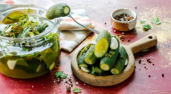 Описание: Как приготовить малосольные огурцы за сутки? Секрет простой: используйте горячий рассол. Если в холодном рассоле огурчики «созревают» на вторые-третьи сутки, то залитые горячим рассолом они будут готовы к употреблению уже через 12 часов. Зелень для засолки можно брать любую, на ваш вкус. Традиционным считается добавление в рассол для огурцов чеснока, зонтиков укропа, листьев хрена и плодовых деревьев. Такие малосольные огурцы, когда они остынут, нужно сразу поставить в холодильник, там они дольше сохранят свежий вкус и не закиснут быстро.📌 Нужно:🔹 Огурцы – 2 кг🔹 Чеснок – 5 зубчиков🔹 Укроп – 3 шт.🔹 Листья смородины – 5 шт.🔹 Листья вишни – 5 шт.🔹 Листья хрена – 3 шт.🔹 Перец чёрный горошек – 10 шт.🔻🔻🔻 Для рассола на 1 л воды:🔹 Соль – 2 ст.л.📌 Готовка: 🔷 Подготовьте все ингредиенты. Листья вишни, смородины, хрена и укроп вымойте и откиньте на дуршлаг, чтобы стекла вода. Огурцы замочите в холодной воде на пару часов. Зубчики чеснока разрежьте пополам.🔷 С замоченных овощей слейте воду, положите их в дуршлаг. Срежьте у огурцов кончики. Это нужно для того, чтобы рассол быстрее проник внутрь и огурцы стали хрустящими.🔷 Листья хрена, вишни, смородины, нарежьте произвольно. Укроп вместе со стеблями также нарежьте. В таком виде зелень быстрее отдаст свой аромат солёному раствору. На дно кастрюли или банки положите немного подготовленной приправы и кусочки чеснока.🔷 Сверху на зелень уложите огурцы, посыпая каждый слой укропом, листочки смородины и хрена, чесноком. Добавьте в ёмкость чёрный перец горошком. Накройте огурцы листьями хрена.🔷 Приготовьте горячий рассол для малосольных огурцов за сутки. В сотейнике доведите до кипения нужное количество воды. Добавьте соль и снимите с огня. Перемешивайте соль до полного растворения. Дайте раствору остыть 5 минут.🔷 Наполненную кастрюлю залейте горячим (но не кипящим) рассолом, сверху положите тарелку и поставьте груз. Оставьте огурцы в рассоле на сутки при комнатной температуре.🔷 Через сутки малосольные огурцы уже готовы к употреблению. При этом их цвет практически не меняется. Поставьте их в холодильник. Каждый день вкус и цвет огурцов будет меняться. Сильносолёными они станут на 6 день.🔥 НА ЗАМЕТКУ. Зачем срезать кончики у огурцов при засолке и мариновании? Обрезанные огурцы лучше впитывают маринад и от этого становятся крепкими и хрустящими. Во-вторых, на кончиках может остаться грязь, которая трудно смывается. 🔥 КСТАТИ. Для любой засолки, не важно, будут это малосольные огурцы за сутки или заготовка на зиму, не стоит использовать йодированную или ароматизированную соль. Лучший продукт для этой цели — каменная или поваренная соль среднего или крупного помола без добавок.