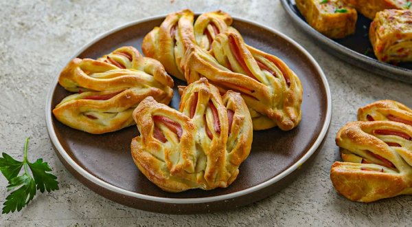 Описание: Вкус детства и пространство для творчества. В этом рецепте булочки готовятся с начинкой из варёной колбасы, но вы можете взять на вооружение только рецепт теста и форму булочек, а начинку менять по своему вкусу — подойдёт не только любая другая колбаса, но и мясо, ломтики запечённой курицы и даже овощные паштеты или тапенады.📌 Нужно:🔹 Мука пшеничная – 400 г🔹 Молоко – 150 мл🔹 Яйцо куриное – 2 шт.🔹 Масло сливочное – 50 г🔹 Масло растительное рафинированное – 50 г🔹 Сахар-песок – 1 ст.л.🔹 Соль – 1 ч.л.🔹 Дрожжи сухие – 1 ч.л.🔹 Колбаса варёная молочная – 400 г📌 Готовка: 🔷 Делаем опару. 50 мл тёплого молока соединить с сахаром и солью, всыпать 3 ст. л. муки и дрожжи. Размешать.🔷 Дать подойти опаре в течение 20 минут.🔷 К опаре добавляем растопленное сливочное масло и растительное, яйцо и порционно просеянную муку. Замешиваем эластичное тесто.🔷 Колбасу нарезаем тонкими ломтиками.🔷 Раскатываем тесто в пласт толщиной примерно 0,5 см. При помощи стакана вырезаем круги. На одну из заготовок выкладываем кусочек колбасы.🔷 Колбасу закрываем ещё одним кругом из теста.🔷 Выкладываем сверху ещё один кусочек колбасы.🔷 Снова закрываем тестом. Делаем надрезы, не доходя до края, поочередно с одной и другой стороны. Всего 5 надрезов.🔷 Придадим форму тюльпана заготовке. Начинаем с левой стороны. Первый (нижний) лепесток подсовываем под второй, второй (верхний) укладываем сверху первого и т. д.🔷 Заготовки выкладываем на противень, смазываем взбитым яйцом с чайной ложкой молока.🔷 Выпекаем в разогретой до 180 °C духовке до золотистого цвета. 🔥 СОВЕТ. Молоко для теста не должно быть горячим — оптимальная температура для дрожжей 35-40 °C, не выше, в противном случае дрожжи могут погибнуть, и тесто не поднимется.🔥 НА ЗАМЕТКУ. Попробуйте приготовить сладкие булочки в духовке — вместо колбасы добавьте между слоями теста смесь сахара и корицы, в остальном следуйте рецепту.