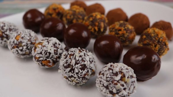 Описание: Домашние шоколадные трюфели – один из лучших подарков, которые можно сделать своими руками. Готовятся они совсем не сложно (особенно, если под рукой у вас есть блендер), зато любят их практически все.📌 Нужно (на 10 порций):🔹 200 г тёмного шоколада🔹 20 г сливочного масла🔹 150 г сливок жирностью 35%🔹 2 ст. л. рома или бренди🔻🔻🔻 Для обсыпки:🔹 50 г любых орехов🔹 50 г тёмного шоколада🔹 0,5 ч. л. сливочного масла🔹 1 ст. л. какао-порошка🔹 30 г кокосовой стружки📌 Готовка:🔷 Шоколад поломайте на куски, поместите в блендер и измельчите.🔷 В сотейник налейте сливки, ром или бренди, положите сливочное масло. Поставьте сотейник на водяную баню и, постоянно помешивая, доведите до кипения. Сразу снимите с огня.🔷 В измельчённый шоколад тонкой струйкой влейте сливочную смесь, взбейте в блендере до однородности. Перелейте в миску, накройте пищевой плёнкой и поставьте в холодильник на ночь.🔷 Чайной ложкой зачерпывайте массу для трюфелей и формируйте из них небольшие шарики. Разложите шарики на 4 группы.🔷 Измельчите орехи в ступке или блендером. Обваляйте часть трюфелей в орехах, уберите в холодильник для застывания.🔷 На водяной бане растопите шоколад и сливочное масло. Обмакивайте в массу шарики, сразу вынимайте. Выложите на доску или плоское блюдо и уберите в холодильник.🔷 Просейте какао-порошок на разделочную доску или плоское блюдо. Обваляйте в нём шарики и уберите в холодильник.🔷 Оставшуюся часть шариков обваляйте в кокосовой стружке и также поместите их в холодильник.🔷 Когда трюфели полностью застынут, переложите их в подарочную коробку.