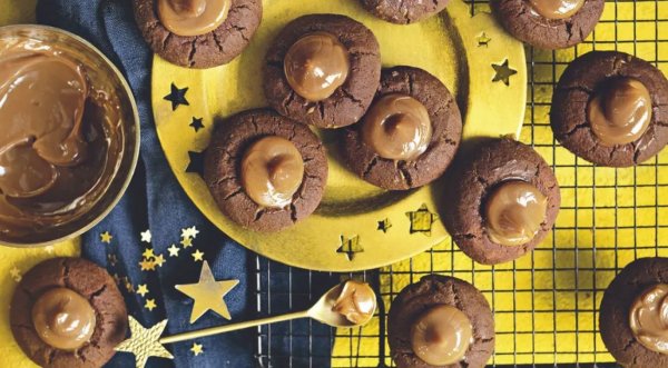 Описание: Выпечка / Десерт. На праздничный стол.📌 НУЖНО (на 8 порций):🔻🔻🔻 Для карамели:🔹 225 г сахара🔹 85 мл сливок жирностью 33%🔹 50 г сливочного масла🔹 соль – по вкусу🔻🔻🔻 Для теста:🔹 150 г муки🔹 150 г сливочного масла🔹 100 г тёмного шоколада🔹 110 г коричневого сахара🔹 1 желток🔹 2 ст. л. какао-порошка🔹 1 ч. л. ванильного экстракта или ванильного сахара🔹 соль – по вкусу📌 ГОТОВКА:🔷 Приготовьте карамель. Для этого всыпьте сахар в сотейник, влейте 60 мл воды и поставьте на средний огонь. Нагревайте, не перемешивая, до полного растворения сахара. Увеличьте огонь и продолжайте нагревать сироп, пока он не станет золотистым. Снимите сотейник с огня. Аккуратно влейте тёплые сливки. Будьте осторожны, масса начнет сильно брызгаться. Перемешайте карамель лопаткой, добавьте сливочное масло и верните на огонь. Готовьте ещё 2 мин. при минимальном нагреве, постоянно перемешивая лопаткой. Добавьте небольшую щепотку соли и перемешайте. Немного остудите, переложите в стеклянную посуду и уберите в холодильник, чтобы карамель загустела.🔷 Наломайте шоколад небольшими кусочками и растопите на водяной бане или в микроволновой печи. Дайте немного остыть. В большую миску положите сливочное масло комнатной температуры, всыпьте сахар, добавьте щепотку соли и взбейте миксером в пышную массу, 3 мин. Добавьте ванильный сахар или экстракт, желток и шоколад, перемешайте. Всыпьте муку и какао-порошок и замесите мягкое тесто. Скатайте тесто в шар, положите в миску, накройте пищевой плёнкой и уберите на 20 мин. в холодильник.🔷 Разогрейте духовку до 160 °C. Застелите два противня бумагой для выпечки. Столовой ложкой отделяйте от теста небольшие кусочки и скатывайте руками шарики размером с грецкий орех. Разложите на противнях на расстоянии не менее 2 см. друг от друга. Большим пальцем сделайте в центре каждого печенья небольшое углубление. Поместите противни в духовку на 12-14 мин. Готовое печенье полностью остудите на решётке.🔷 В углубления на печенье разложите остывшую густую карамель.