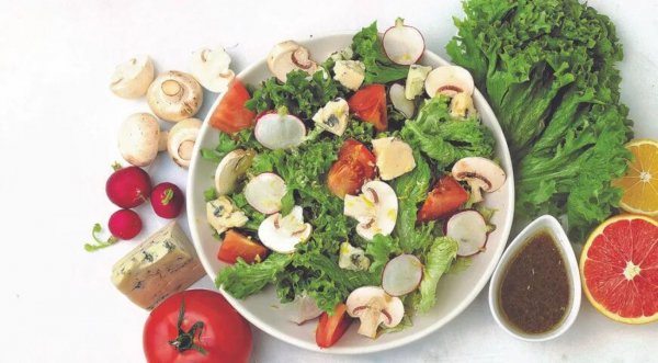 Описание: Салат. Без термообработки. На обед или ужин. Для лакто-вегетарианцев.📌 НУЖНО (на 4 порции):🔹 листовой салат Афицион - в горшочке🔹 200 г горгонзолы (сыр с голубой плесенью)🔹 100 г сырых шампиньонов🔹 50 г редиса🔹 2 крупных помидора🔹 1 апельсин🔹 половина лимона🔹 пучок петрушки🔻🔻🔻 Для заправки:🔹 1 ч. л. сока апельсина🔹 1 ч. л. сока лимона🔹 2 ст. л. оливкового масла🔹 2 ст. л. бальзамического уксуса🔹 1 ч. л. сахара🔹 соль, молотый чёрный перец – по вкусу📌 ГОТОВКА:🔷 Для заправки смешайте сок апельсина, лимона и бальзамический уксус, посолите, поперчите, добавьте сахар и размешайте до полного растворения. Влейте оливковое масло и взбейте заправку до состояния эмульсии.🔷 Натрите цедру с половины лимоны на мелкой тёрке, выжмите немного сока.🔷 Нарежьте шампиньоны тонкими ломтиками и сбрызните лимонным соком. Редис нарежьте тонкими кружками. Помидоры нарежьте на дольки, затем каждую разрежьте пополам.🔷 Срежьте кожуру с апельсина вместе с белым слоем цедры, острым ножом вырежьте мякоть между плёнками. Нарежьте мякоть небольшими кусочками. Мелко порубите листья петрушки.🔷 Нарвите листья салата удобными для еды кусочками и положите в салатник. Добавьте апельсин, помидоры, редис, петрушку и шампиньоны, полейте заправкой, посыпьте цедрой и перемешайте. Нарежьте сыр средними кубиками и выложите на салат перед подачей.