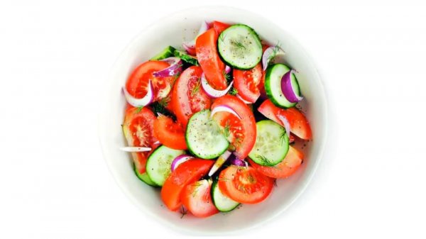 Описание: Самое необычное в этом салате из свежих овощей – его заправка. Наверняка вы заправляли овощные салаты ароматным нерафинированным подсолнечным маслом, вкус которого знаком почти каждому из нас. Точно так же популярны салаты со сметаной или более лёгким йогуртом. Мы же предлагаем не выбирать из этих двух вариантов, а объединить в одном салате кислинку, сливочность и кальций из натурального йогурта и обволакивающий аромат нерафинированного растительного масла. Вы удивитесь, насколько богаче станет вкус обычного овощного салата с такой заправкой. 📌 НУЖНО (на 4 порции):🔹 2 помидора🔹 2 огурца🔹 1 красная луковица🔹 100 г натурального йогурта🔹 3 ст. л. нерафинированного растительного масла🔹 1 ч. л. лимонного сока🔹 соль, молотый чёрный перец🔹 укроп для подачи📌 ГОТОВКА:🔷 Помидоры нарежьте дольками, огурцы – кружками. Лук очистите и нарежьте полукольцами.🔷 В небольшой ёмкости соедините йогурт с растительным маслом и лимонным соком, перемешайте.🔷 Выложите овощи в салатник, посолите и тщательно перемешайте. Добавьте заправку и укроп, поперчите и сразу подавайте🔥 НА ЗАМЕТКУ. Заправку можно приготовить из смеси оливкового масла, соевого соуса, лимонного сока и капли табаско. А готовый салат посыпать обжаренными семечками.🔥 КСТАТИ. Вы можете использовать не только нерафинированное подсолнечное масло, но и более редкое кукурузное и даже поэкспериментировать с ярким и ароматным кунжутным, которое придаст салату лёгкие азиатские ноты (возможно, в этом случае укроп вам захочется заменить на более уместную кинзу и колечки перца чили).