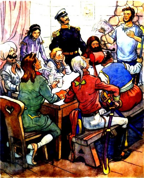 Описание: Клуб знаменитых капитанов - многосерийная радиопьеса для детей. Цикл выходивший на Всесоюзном радио 37-мь лет - (декабрь 1945г. - 1982г.). Самая первая передача цикла вышла в эфир Всесоюзного радио - 31 декабря 1945 года и в ней принял участие народный артист Советского Союза Василий И. Качалов.Каждый очередной выпуск передачи это новое заседание клуба. Большинство выпусков начиналось с краткого диалога библиотекарей Марии Петровны и Катюши, готовящихся закрыть библиотеку. Как только библиотека закрывалась знаменитые капитаны сходили со страниц своих книг и выбирали председателя. Определить жанр «Клуба знаменитых капитанов» не просто - юные радиослушатели открывали для себя удивительный и необъятный мир дальних плаваний и разнообразных приключений, а заодно узнавали много нового и интересного о великих путешественниках, об истории географических открытий, о чудесных явлениях природы и достижениях науки. А потом неизбежно наступал час, когда в полумраке библиотеки раздавался бой старинных часов и за окном кричал петух, напоминающий капитанам о том, что им пора возвращаться на страницы покинутых книг.__________________________Действующие лица и исполнители:Мария Петровна - София С. Гальперина;Катюша - Наталья Д. Львова;Гулливер - Борис А. Лавров;Тартарен - Осип Н. Абдулов;Мюнхгаузен - Александр П. Хованский;Гаттерас - Леонид М. Шихматов;Робинзон Крузо - Ростислав Я. Плятт;Немо - Михаил С. Нароков;Старый год - Василий И. Качалов.Сценарий - Климентий Б. Минц, Владимир М. Крепс.Режиссёр (радио) - Нина А. Герман.Текст песен - Сергей М. Богомазов.Композитор - Юрий С. НикольскийМузыка и песни - В шорохе мышином, Песня Гулливера, Новогодний тост, За окошком снова