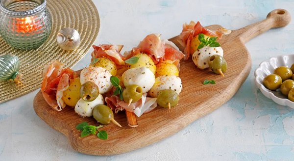 Название: Ветчина, моцарелла, оливки и дыня на шпажках