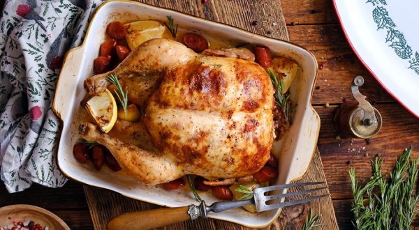 Описание: 🥣 Запечённая курица, фаршированная творожным сыром и копчеными колбасками✅ НУЖНО:🔹 1 курица🔹 140 г творожного сыра🔹 150 г копчёных колбасок🔹 4 зубчика чеснока🔹 2 ст. л. оливкового масла🔹 1 лимон🔹 1 веточка розмарина🔹 1 ч. л. сушёного розмарина🔹 соль🔹 молотый чёрный перец✅ ГОТОВКА:🔷 Разогрейте духовку до 200 °C. Мелко нарежьте 50 г колбасок, измельчите 2 зубчика чеснока и соедините с творожным сыром и розмарином. Осторожно, стараясь не повредить, отделите кожу курицы, начиная с шеи. Наполните полость начинкой из сыра с колбасками и распределите руками под кожей, придавая курице аккуратный вид. Закрепите деревянными шпажками. Нарежьте лимон и вложите половину в брюшко.🔷 Поместите курицу грудкой вверх в жаростойкую форму. Посолите, посыпьте перцем и полейте оливковым маслом. Нарежьте оставшиеся колбаски и добавьте в форму. Разложите оставшиеся дольки лимона, чеснок и листочки розмарина. Запекайте в центре духовки в течение 1,5 ч, время от времени поливайте выделяющимся соком из формы. Время приготовления будет зависеть от размера курицы.🔷 Выньте форму из духовки, накройте курицу фольгой и оставьте на 5 мин.🔥 НА ЗАМЕТКУ. Чтобы блюдо удалось, понадобится очень свежая курица. Как это определить? Тушка птицы должна быть нежно-розовая с белым жиром и упругая (надавите пальцем на мякоть и посмотрите, как быстро вмятина исчезнет), без неприятного запаха.🔥 КСТАТИ. Вытащив курицу из духовки, оставьте её «отдохнуть» на 5-15 минут. Это нужно для того, чтобы соки равномерно распределились по тушке. Тогда куриное мясо будет сочным, когда вы его разрежете.