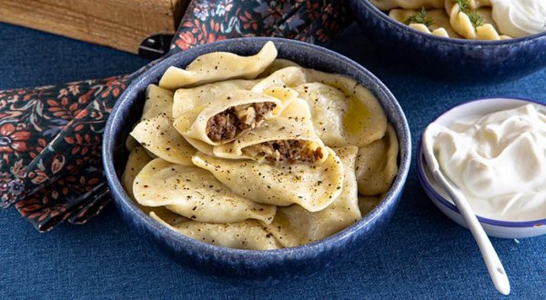 Описание: 🥣 Вареники с капустой и мясным фаршем✅ НУЖНО:🔹 500 г муки + 100 г для посыпки рабочей поверхности🔹 0,5 ч. л. соли🔹 сливочное масло для подачи🔹 сметана для подачи👉 Для начинки:🔹 250 г мясного фарша🔹 150 г капусты🔹 1 луковица🔹 4 ст. л. растительного масла🔹 ¼ ч. л. молотого мускатного ореха🔹 1/4 ч.л. молотой смеси перцев✅ ГОТОВКА:🔷 Приготовьте тесто. В большую миску всыпьте муку, добавьте соль и влейте 250-280 мл тёплой воды. Замесите упругое тесто, скатайте в шар, заверните в пищевую плёнку и оставьте на 30 мин.🔷 Приготовьте начинку из мяса и капусты. Тонко нашинкуйте капусту, нарежьте лук мелкими кубиками. В сковороде разогрейте 2 ст. л. растительного масла и потушите лук до прозрачности, 5 мин. Добавьте фарш, приправьте мускатным орехом и готовьте на среднем огне, разминая комки, еще 7-8 мин. Переложите фарш в миску. В ту же сковороду влейте оставшееся растительное масло, выложите капусту и готовьте 5-7 мин. Соедините капусту с мясным фаршем, посолите, приправьте смесью перцев, перемешайте и остудите.🔷 Посыпьте рабочую поверхность мукой, выньте тесто и снова вымесите. Сформируйте жгуты толщиной 2 см и нарежьте небольшими кусочками. Раскатайте каждый кусочек теста в тонкий кружок, выложите на середину 1 ст. л. начинки и плотно защипните края. Готовые вареники выкладывайте на доску, присыпанную мукой или застеленную бумагой для выпечки.🔷 В широкой кастрюле вскипятите 2,5 л воды, посолите, аккуратно опустите вареники и доведите на сильном огне до кипения. После того как вареники всплывут, уменьшите нагрев до среднего и готовьте ещё 6-7 мин. Откиньте на дуршлаг, переложите в тарелки, полейте растопленным маслом и сразу подавайте со сметаной.🔥 НА ЗАМЕТКУ. Несладкие вареники можно подать к столу не только с растопленным маслом и сметаной. Здорово будет посыпать их в тарелке хрустящими шкварками с жареным луком и украсить свежей зеленью.🔥 КСТАТИ. Для начинки подойдёт любой фарш – говяжий, свиной, куриный, из индейки или кролика, из нескольких сортов мяса – выбирайте на ваш вкус. Капусту можно использовать не только свежую, но и квашеную.