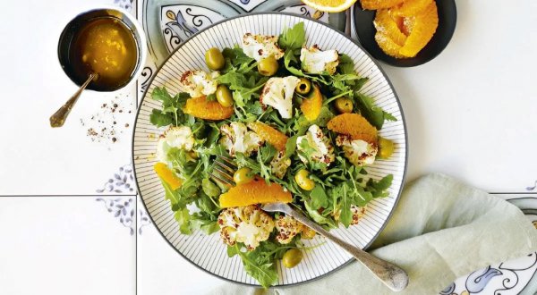 Описание: 🥣 Салат с цветной капустой, апельсином и оливками✅ НУЖНО:🔹 800 г цветной капусты🔹 1 апельсин🔹 140 г руколы🔹 100 г оливок🔹 5 ст. л. оливкового масла🔹 1 ст. л. светлого бальзамического уксуса🔹 2 ч. л. мёда🔹 молотый чёрный перец🔹 соль✅ ГОТОВКА:➡️ Разогрейте духовку до 220 °C. Разберите цветную капусту на соцветия и сложите в жаростойкую форму. Посолите, посыпьте перцем, полейте 2 ст. л. оливкового масла и запекайте на среднем уровне духовки в течение 25 мин.➡️ Очистите апельсин, острым ножом вырежьте из долек мякоть. Держите апельсин над небольшой миской, чтобы собирать сок.➡️ Добавьте в миску с соком оставшееся оливковое масло, мёд и бальзамический уксус и взбейте.➡️ В большой салатник выложите руколу и цветную капусту, добавьте апельсин и оливки, полейте заправкой и аккуратно перемешайте.🔥 НА ЗАМЕТКУ. Особенно прекрасны в таком салате будут оливки-гриль, которые сейчас часто можно встретить на рынках и в магазинах. А ещё оливки можно смешать с небольшим количество оливкового масла и выложить на противень к цветной капусте за 5 минут до её готовности.🔥 КСТАТИ. Апельсин удобно очистить, срезав верхнюю часть, а затем двигаясь ножом по спирали. Постарайтесь захватить не только кожуру, но и тонкие плёнки апельсиновых долек. Затем сделайте надрез острым ножом вдоль одной из плёнок дольки, и аккуратно снимите мякоть со второй его плёнки.