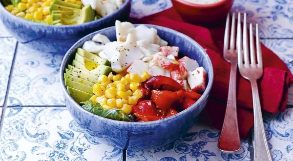 Название: Рыбный салат с крабовыми палочками, авокадо и кукурузой