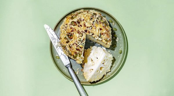 Описание: 🥣 Запечённая цветная капуста с хумусом и сыром✅ Нужно:🔹 кочан цветной капусты (1 кг)🔹 120 г твёрдого сыра🔹 100 г хумуса🔹 1 ст. л. тыквенных семечек🔹 1 ст. л. семян подсолнечника🔹 1 ст. л. семян кунжута🔹 1 зубчик чеснока🔹 4 ст. л. оливкового масла🔹 1 ст. л. лимонного сока🔹 соль✅ Готовка:➡️ Чтобы приготовить цветную капусту с хумусом и сыром, разогрейте духовку до 200 °С. Форму для запекания смажьте оливковым маслом.➡️ Подровняйте ножом нижнюю часть кочана, чтобы он устойчиво стоял в форме. Поместите капусту в кастрюлю и залейте водой на три четверти высоты кочана. Доведите на сильном огне до кипения, уменьшите нагрев до среднего, посолите и готовьте 10 мин.➡️ На мелкой тёрке натрите сыр, измельчите чеснок. Соедините хумус с половиной сыра, чесноком, лимонным соком и оливковым маслом, тщательно перемешайте.➡️ Выньте капусту из кастрюли, обсушите бумажными полотенцами и поставьте в форму. Распределите по всей поверхности смесь из хумуса, посыпьте семечками и оставшимся сыром. Запекайте в духовке 30 мин. Нарежьте капусту клиньями и подавайте.🔥 НА ЗАМЕТКУ. Чаще всего цветная капуста готовится с панировочными сухарями, которые здесь заменили на более полезный и вкусный вариант – семена тыквы, подсолнечника и кунжута.🔥 КСТАТИ. Цветную капусту можно запечь в духовке и без предварительного отваривания. В таком случае следует увеличить время приготовления блюда. Либо перед добавлением масла дать потомиться капусте в духовке в небольшом количестве воды.