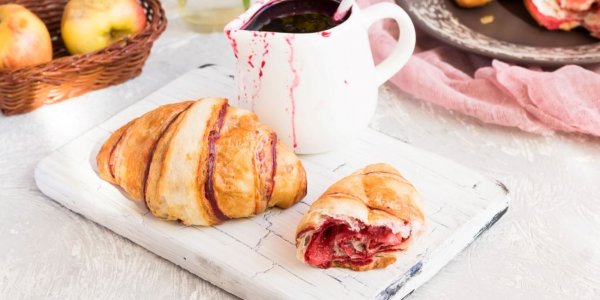 Описание: 🥣 Простые круассаны из слоёного теста с замороженными ягодами✅ Нужно:🔹 Замороженные ягоды (малина, клубника или другие) – 140 г🔹 Сахар – 70 г🔹 Кукурузный крахмал – 1½ ст. ложки🔹 Вода – 1 ст. ложка🔹 Слоёное тесто – 500 г🔹 Яйцо – 1 штука🔹 Молоко – ½ ст. ложки✅ Готовка:➡️ Поместите в кастрюльку ягоды, сахар, крахмал и воду. Хорошо перемешайте.➡️ Доведите ягодную массу до кипения на сильном огне и варите, непрерывно помешивая, 5 минут. Затем готовьте на слабом огне ещё 2 минуты.➡️ Немного остудите ягоды, переложите в миску и уберите в холодильник.➡️ Разогрейте духовку до 220 ℃. Застелите два противня бумагой для выпечки.➡️ Положите тесто на стол, присыпанный мукой, и раскатайте в тонкий пласт.➡️ Полностью смажьте тесто остывшей ягодной начинкой.➡️ Острым ножом разрежьте на длинные узкие треугольники. Начиная с широкого края, скрутите в рулетики, формируя круассаны.➡️ Выложите заготовки на противни, оставляя между ними пространство.➡️ Взбейте яйцо с молоком. Можно добавить немного сахара. Смажьте тесто.➡️ Выпекайте круассаны 20-25 минут, до золотистого цвета.