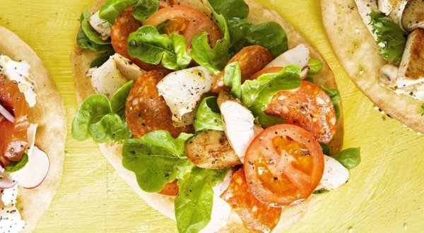 Описание: 🥣 Лепёшка с пеперони и курицей✅ Нужно:🔹 4 лепёшки🔹 2 куриные грудки без кожи и костей🔹 100 г пеперони🔹 2 маринованных перца (острого или сладкого)🔹 2 помидора🔹 4 листа зелёного салата🔹 4 ст. л. оливкового масла🔹 ½ ч. л. чесночного порошка🔹 1 ч. л. лимонного сока🔹 соль🔹 молотый чёрный перец✅ Готовка:🔵 Обсушите курицу бумажными полотенцами, сбрызните лимонным соком, посолите и приправьте перцем и чесночным порошком. В большой сковородке разогрейте оливковое масло, установите средний нагрев и жарьте курицу 5 мин. Переверните на другую сторону и продолжайте готовить ещё 5 мин. Снимите с огня, накройте фольгой и оставьте на 7-10 мин в тепле.🔵 Нарежьте пеперони, помидоры и маринованный перец тонкими кружками. Листья салата порвите руками. Курицу нарежьте поперёк волокон ломтиками толщиной 1 см.🔵 Слегка подогрейте лепёшки на сухой сковородке и разложите на них курицу, помидоры, перец и пеперони. Добавьте салат и сразу подавайте.🔥 НА ЗАМЕТКУ. Вместо пепперони можно добавить другую похожую колбасу – чоризо, острую салями, – либо сыровяленую ветчину.🔥 КСТАТИ. Для этой закуски очень хорошо подойдёт тортилья – мексиканская пресная лепёшка. А куриное филе можно заменить на поджаренный куриный фарш. Подойдёт и копчённая курица.