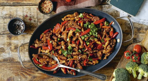 Описание: 🥣 Мясо по-корейски с перцем и морковью✅ Нужно:🔹 1 кг мякоти свинины (желательно шейки)🔹 2 сладких красных перца🔹 1 средняя морковь🔹 4 зубчика чеснока🔹 3-4 веточки кинзы🔹 150 мл соевого соуса🔹 120 мл растительного масла🔹 100 г кукурузного крахмала🔹 сок половины лимона🔹 2-3 ст. л. сахара✅ Готовка🔵 Обсушите мясо бумажными полотенцами, разрежьте поперёк ломтиками толщиной 1 см. Затем нарежьте длинными узкими полосками. Сладкий перец разрежьте вдоль, удалите семена и перегородки. Половинки перца и морковь нашинкуйте длинной соломкой. Измельчите чеснок.🔵 Всыпьте в миску крахмал и обваляйте мясо. В глубокой сковороде разогрейте растительное масло. Выложите небольшую порцию мяса и жарьте на среднем огне, помешивая, до золотистого цвета, 5-6 мин. Переложите на тарелку и жарьте следующую порцию.🔵 В ту же сковороду положите перец и морковь и готовьте, перемешивая, 5 мин. Верните в сковороду мясо, добавьте чеснок и сахар, влейте соевый соус и лимонный сок. Уменьшите нагрев до минимального и готовьте под крышкой 8-10 мин. Посыпьте блюдо измельчённой кинзой. Подавайте с картофелем фри.🔥 НА ЗАМЕТКУ. В качестве гарнира к этому блюду можно подать не только картофель фри, но и рис или какую-нибудь азиатскую лапшу.🔥 КСТАТИ. Жарьте мясо небольшими порциями, выкладывая его в сковороду так, чтобы между кусочками оставалось свободное место. Если положить одновременно слишком много мяса, оно будет не жариться, а тушиться.