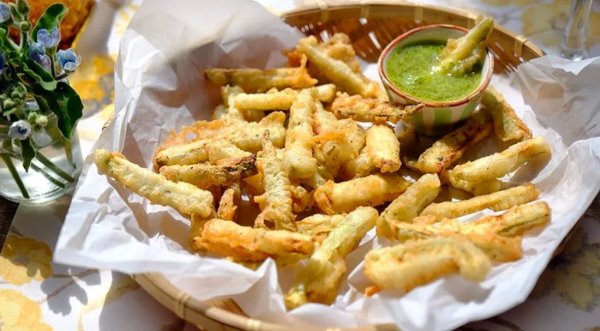 Описание: 🥣 Хрустящие кабачки с соусом✅ Нужно:🔹 2-3 кабачка🔹 250 мл растительного масла для жарки🔹 ½ ч. л. сушёного орегано🔹 соль, молотый чёрный перец👉 Для соуса:🔹 120 мл оливкового масла🔹 1 желток🔹 1 зубчик чеснока🔹 сок половины лимона🔹 1 ст. л. соуса песто🔹 1 ч. л. горчицы👉 Для кляра:🔹 120 мл газированной воды🔹 75 г муки🔹 1 белок✅ Готовка🔵 Нарежьте кабачки брусочками толщиной 1 см. Посолите, перемешайте и сложите в дуршлаг, установленный над миской. Оставьте кабачки на 20 мин, чтобы стекла лишняя жидкость. Выложите кабачки тонким слоем на бумажные полотенца и обсушите.🔵 Приготовьте соус. В высокий стакан погружного блендера поместите желток и горчицу, посолите и влейте оливковое масло. Опустите погружной блендер до дна стакана и включите максимальную скорость. Через несколько секунд масса посветлеет и начнет густеть. Влейте лимонный сок, добавьте соус песто и снова перемешайте блендером. Готовый соус переложите в небольшую мисочку.🔵 В глубокой сковороде или сотейнике разогрейте на среднем огне растительное масло.🔵 Для кляра взбейте белок в крепкую пену. Смешайте муку с газированной водой, добавьте белок и аккуратно перемешайте. Опустите в кляр небольшую партию кабачков, затем аккуратно положите в сковороду и жарьте примерно 1 мин. Выньте шумовкой и переложите на тарелку, застеленную бумажными полотенцами. Продолжайте жарить кабачки небольшими партиями.🔵 Посыпьте кабачки орегано, солью и перцем, аккуратно перемешайте и подавайте с соусом.🔥 НА ЗАМЕТКУ. Хрустящие кабачки с соусом — это вариант картофеля фри. И ещё один рецепт, как можно небанально приготовить овощ. 🔥 КСТАТИ. Обязательно предложите закуску детям: кто знает, может, они оценят её также высоко, как и свой любимый картофель фри.