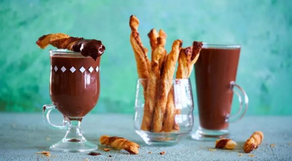 Описание: 🥣 Горячий шоколад с миндальными спиральками✅ Нужно:🔹 150 г тёмного шоколада🔹 150 г молочного шоколада🔹 300 мл сливок жирностью 10–20%🔹 250 мл молока👉 Для соломки:🔹 1 пласт (250 г) слоёного бездрожжевого теста🔹 1 яйцо🔹 1 ст. л. сахара🔹 1 ст. л. миндальной муки или измельчённого в блендере миндаля✅ Готовка🔵 Немного раскатайте пласт теста. Взбейте яйцо вилкой и смажьте им тесто, посыпьте сахаром и измельчённым миндалем. Нарежьте тесто на полоски шириной 1 см.🔵 Аккуратно взяв полоски за концы, слегка скрутите их в противоположные стороны, чтобы получились спирали.🔵 Выложите спирали на застеленный пергаментом противеньна небольшом расстоянии друг от друга. Выпекайте в разогретой до 190 °С духовке 8-10 мин.🔵 Для горячего шоколада мелко порубите шоколад ножом, смешайте в сотейнике с молоком и сливками. Доведите смесь до кипения, убавьте огонь и варите 2 мин., постоянно помешивая.🔵 Подавайте шоколад горячим, с миндальной соломкой.