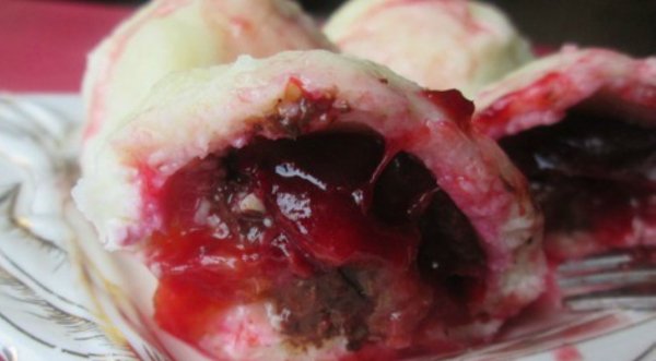 Описание: 🥣 Кнедлики со сливами и шоколадом✅ Нужно:🔹 500 г жирного творога🔹 16-20 мелких слив🔹 100 г шоколада🔹 2 яйца🔹 150-170 г муки🔹 соль, сахар👉 Для сиропа:🔹 100 г коричневого сахара🔹 2 апельсина🔹 1 палочка корицы🔹 3 бутона гвоздики🔹 1 звёздочка бадьяна✅ Готовка🔵 Заранее приготовьте сироп. Снимите с вымытых щёткой апельсинов цедру полосками, выжмите из мякоти сок. Влейте сок в сотейник, добавьте цедру, сахар и все пряности.🔵 Доведите смесь до кипения и варите, помешивая, на минимальном огне 10-12 мин. Снимите с огня, остудите и процедите, после чего поставьте в холодильник.🔵 Творог протрите сквозь сито или взбейте блендером до гладкости. Добавьте взбитые вилкой яйца и соль, смешайте блендером или миксером до однородности. Всыпьте муку и замесите мягкое эластичное тесто, заверните в плёнку и дайте полежать 20-30 мин.🔵 Скатайте из теста равномерно толстую колбаску и разделите её на 16-20 одинаковых частей. Это можно сделать вечером.🔵 Из каждой сливы через небольшой надрез выньте косточку, положите вместо неё кусочек шоколада. Разминайте каждый кусочек теста руками в лепёшку такого размера, чтобы завернуть в неё сливу. Тщательно защипните и разгладьте шов.🔵 В большой кастрюле вскипятите воду, добавьте по 1 ч. л. сахара и соли; опустите кнедлики в кипяток, доведите до кипения и варите на среднем огне 15 мин. Выньте готовые кнедлики шумовкой, давая стечь воде. Выложите в тарелки и полейте сиропом.