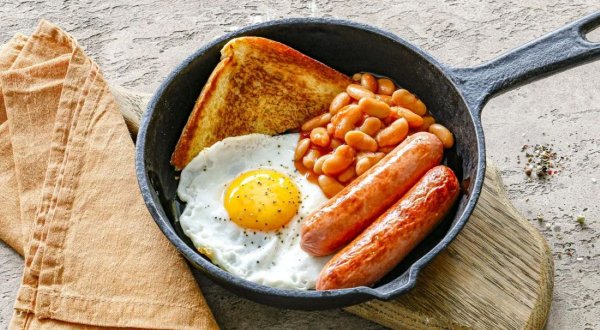 Описание: 🥣 Яичница с сосисками, фасолью и тостом✅ Нужно:🔹 яйцо С0 – 1 шт.🔹 сосиска – 2 шт.🔹 консервированная фасоль – 3 ст. л.🔹 сливочное масло – 40 г🔹 оливковое масло – 2 ст. л.🔹 хлеб для тостов – 1-2 ломтика🔹 сушёный тимьян – ¼ ч. л.🔹 соль, молотый чёрный перец✅ Готовка🔵 В небольшой сковородке растопите сливочное масло. Установите средне-слабый нагрев, вылейте яйцо и готовьте в течение 3 мин. Посолите, накройте сковородку крышкой и продолжайте готовить ещё 30 сек. За это время белок станет плотным, а желток останется полужидким. Аккуратно переложите яичницу на тарелку и сохраняйте тёплой.🔵 В ту же сковородку добавьте 1,5 ст. л. оливкового масла, выложите сосиски и обжарьте со всех сторон до золотистого цвета, 2 мин. Отодвиньте сосиски на край сковородки, на свободное пространство выложите фасоль. Приправьте сушёным тимьяном и молотым чёрным перцем и прогрейте 1 мин. Переложите сосиски и фасоль на тарелку к яичнице.🔵 Сбрызните ломтики хлеба оставшимся оливковым маслом. В той же сковородке обжарьте хлеб с двух сторон до золотистого цвета. Можно подсушить хлеб в тостере или в духовке. Подайте хрустящие тосты вместе с яичницей, фасолью и сосисками.🔥 НА ЗАМЕТКУ. Вместо сосисок для яичницы можно взять нежирные сардельки или тонкие подкопчённые колбаски типа охотничьих.🔥 КСТАТИ. Для этой яичницы вы можете взять не только консервированную, но и варёную фасоль. Только её нужно будет приготовить накануне — варится фасоль долго.