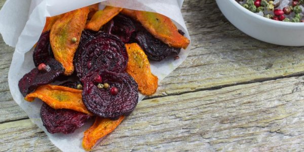 Описание: 🥣 Чипсы из свёклы и моркови📌 Нужно🔹 Крупная морковь – 1 штука🔹 Свёкла – 1 штука🔹 Оливковое масло – 1 ст. ложка🔹 Соль – по вкусу🔹 Любые специи – по вкусу📌 Готовка🔷 Морковь и свёклу очистите и нарежьте тонкими кружками.🔷 Обмакните каждый из них в оливковое масло и выложите на противень, застеленный пергаментом.🔷 Сверху посыпьте солью и любимыми специями. Выпекайте по 20 минут с каждой стороны при температуре 170 °С.🔥 КСТАТИ. Похрустеть за любимым сериалом можно не только покупными картофельными чипсами. Домашний овощной фастфуд тоже очень вкусный.
