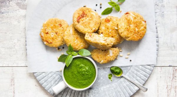 Описание: 🥣 Биточки из киноа и капусты с соусом песто📌 Нужно🔹 киноа – 150 г🔹 овощной бульон – 500 мл🔹 капуста – 100 г🔹 луковица – 1 шт.🔹 чеснок – 2 зубчика🔹 панировочные сухари – 75 г🔹 яйцо – 2 шт.🔹 вяленые помидоры – 50 г🔹 молодой козий сыр – 100 г🔹 соус песто – для подачи🔹 растительное масло 🔹 соль, молотый чёрный перец📌 Готовка🔷 Киноа отварите в овощном бульоне согласно инструкции на упаковке. Полностью остудите.🔷 Одновременно капусту нарежьте средними кусочками и отварите в кипящей питьевой воде, 6-8 мин. Откиньте капусту на сито. Отвар слейте. Капусту обсушите на бумажных полотенцах. Нашинкуйте.🔷 Лук мелко нарежьте. Разогрейте растительное масло и обжарьте лук, 2-3 мин. Добавьте чеснок, разрезанный на 2-4 части. Готовьте ещё 1 мин.🔷 Переложите содержимое сковороды в миску. Добавьте киноа, капусту, панировочные сухари, мелко нарезанные помидоры и яйца. Посолите и поперчите. Перемешайте.🔷 Сформируйте из получившейся массы биточки и обжарьте их на растительном масле по 4-5 мин. с каждой стороны. Промокните биточки от излишков жира на бумажных полотенцах. Разложите по тарелкам. Раскрошите сыр. Положите его на биточки, рядом — щедрую ложку песто. Подавайте тёплыми.🔥 НА ЗАМЕТКУ. Биточки из киноа и капусты с песто – идеальный рецепт для тех, кто соблюдает диету или не ест мясные или рыбные продукты. Такой почти вегетарианский вариант (если не считать сыр в составе) знакомого многим блюда подойдёт в качестве сытного перекуса на обед или ужин. Впрочем, если среди едоков найдутся мясоеды, то биточки из киноа и капусты в итальянском стиле – с песто и вялеными помидорами – можно подать и в качестве гарнира. В этом случае не потребуется дополнительное сопровождение в виде, например, салата и хлеба. В котлетках уже есть всё.🔥 КСТАТИ. Киноа внешне очень похожа на пшено, но по составу ближе к пшенице. Между прочим, для инков, которые называли её «золотым зерном», эта крупа была одним из главных продуктов, наряду с картошкой и кукурузой.