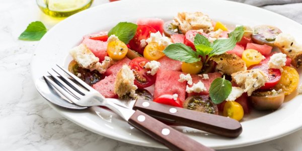 Описание: 🥣 Салат «Капрезе» с арбузом📌 Нужно🔹 Арбуз – 2 больших ломтика🔹 Оливковое масло – 2 ст. ложки🔹 Соль – ½ ч. ложки🔹 Молотый чёрный перец – ½ ч. ложки🔹 Мёд – 2 ст. ложки🔹 Помидоры черри – 500 г🔹 Моцарелла – 120 г🔹 Свежие листья базилика – 1 горсть🔹 Бальзамический уксус – по вкусу👉 Можно добавить:🔹 Сухарики – по вкусу📌 Готовка🔷 Разогрейте гриль или сковороду-гриль. Каждый ломтик арбуза разрежьте на четыре треугольника, смажьте с двух сторон оливковым маслом, посолите и поперчите. Добавьте немного мёда и отправьте на гриль.🔷 Готовый арбуз выложите на тарелки. Поверх него распределите разрезанные на четвертинки черри, раскрошенную моцареллу и базилик.🔷 Добавьте немного соли, перца и бальзамического уксуса. При желании дополните салат сухариками.