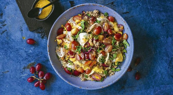 Описание: 🥣 Жареная чёрная редька с виноградом и киноа📌 Нужно🔹 киноа – 120 г🔹 чёрная редька крупная – 2 шт.🔹 лук красный – 0,5 шт.🔹 виноград красный – небольшая кисть🔹 лимонный сок – 2 ст. л.🔹 тёртая цедра – ½ ч. л.🔹 петрушка – 3-4 веточки🔹 оливковое масло – 4 ст. л.🔹 соль, молотый чёрный перец👉 Для заправки:🔹 кунжутное масло – 1 ч. л.🔹 оливковое масло – 2 ст. л.🔹 лимонный сок – 1 ст. л.🔹 тёртая цедра – ½ ч. л.🔹 дижонская горчица – 1 ч. л.🔹 соль📌 Готовка🔷 Залейте киноа горячей водой и оставьте на 15-20 мин. Откиньте киноа на большое сито, ополосните холодной водой и дайте стечь жидкости. Доведите до кипения 250 мл воды, всыпьте крупу. Уменьшите нагрев до минимального, посолите и готовьте под крышкой 10-12 мин. Снимите с огня и оставьте в тепле на 5 мин. Разворошите киноа вилкой.🔷 Разогрейте духовку до 200 °C. Застелите противень бумагой для выпечки. Жаростойкую форму размером 24х30 см смажьте оливковым маслом.🔷 Очищенную чёрную редьку нарежьте половинками кружков толщиной 4-5 мм. Сложите в миску, посолите, полейте 1 ст. л. оливкового масла и 1 ст. л. лимонного сока и перемешайте. Разложите редьку на противне в один слой и запекайте на среднем уровне духовки в течение 15 мин. Выньте противень и переверните ломтики на другую сторону. Верните в духовку и продолжайте запекать ещё 15 мин. Края ломтиков редьки должны подрумяниться, а середина – сделаться мягкой.🔷 Отделите виноградины от ветки. Крупные ягоды нарежьте кружками поперёк. Если виноград мелкий, разрежьте ягоды вдоль на две части. Разложите подготовленный виноград в форме, посыпьте небольшим количеством цедры, сбрызните лимонным соком и оливковым маслом, приправьте перцем и запекайте в духовке в течение 10 мин.🔷 Луковицу нарежьте полукольцами толщиной 3 мм. В большой сковороде разогрейте 2 ст. л. оливкового масла, выложите лук и слегка посолите. Обжаривайте на среднем огне 5-7 мин.🔷 Приготовьте заправку. В небольшой миске соедините кунжутное и оливковое масло с лимонным соком и цедрой, добавьте горчицу и посолите. Взбивайте заправку до образования густой эмульсии.🔷 В большой салатник выложите киноа, ломтики редьки, лук и измельчённую петрушку. Влейте заправку и аккуратно перемешайте. Разложите запеченный виноград вместе с сиропом из формы и сразу подавайте.🔥 НА ЗАМЕТКУ. Такой салат можно дополнить листьями салата или микрозеленью – источниками свежести и дополнительной клетчатки. Вы можете подать салат, выложив все ингредиенты на киноа по отдельности, чтобы каждый гость добавил соус и смешал содержимое миски самостоятельно.🔥 КСТАТИ. Эмульсию можно взбить венчиком в миске, но есть и другой способ: сложите все ингредиенты в небольшую банку с плотно закрывающейся (лучше завинчивающейся) крышкой и интенсивно потрясите – эмульсия готова!