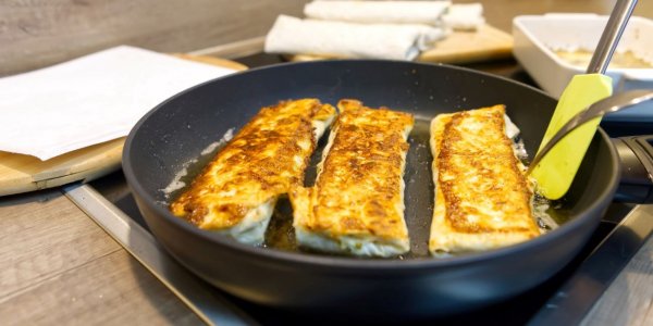 Описание: 🥣 Быстрые пирожки из лаваша с творогом и вишней📌 Нужно🔹 Творог жирностью 9% – 200 г🔹 Сахар обычный – 70 г🔹 Сахар ванильный – 10 г🔹 Вишня без косточек – 80 г🔹 Лаваш тонкий – 140 г🔹 Сливочное масло – 50 г📌 Готовка✅ Творог смешайте с сахаром (обычным и ванильным), добавьте вишню и распределите её равномерно по творогу.✅ Лаваш разделите на полоски шириной примерно 10-15 см. На край одной полоски выложите часть начинки и сверните в конвертик или треугольник. Сделайте таким образом несколько заготовок.✅ Сковороду поставьте на огонь, положите кусочек сливочного масла и обжарьте на нём пирожки с творогом и вишней.