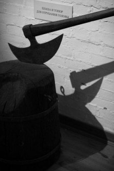 Описание: ОБЕЗГЛАВЛИВАНИЕ (ОТСЕЧЕНИЕ ГОЛОВЫ НА ПЛАХЕ).Этот вид казни, бывший в прошлые века едва ли не самым популярным, сейчас на практике применяется только в Саудовской Аравии, да ещё закреплен в законодательстве Йеменской Арабской Республики и Объединенных Арабских Эмиратов. Осуществляется он путем отсечения головы от тела ударом меча или топора. В Средневековой Европе обезглавливание считалось казнью для представителей благородного сословия и никогда не применялось к мещанам и крестьянам. Толькогильотина Великой Французской революции уравняла всех. Когда голову отсекали мечом, то приговоренного ставили на колени и палач широким замахом, сносил преступнику голову с плеч. При казни топором, непременным атрибутом была плаха — чурбан из дуба или липы, высотой не более метра, возможно, с выемкой для головы. Опытный палач отделял голову от туловища одним ударом и тотчас, поднявеё за волосы, показывал толпе.