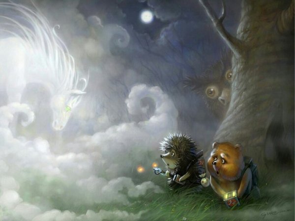 Ежи-и-и-ик и мишка и лошадь в тумане...