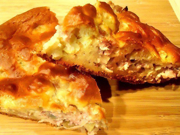 Описание: Лучшего теста для наливных пирогов просто не бывает! Основное его преимущество тесто без майонеза, а на кефире. Составляющие этого теста найдутся в каждом доме. Его приготовление займёт всего минут 10, а результат получите превосходный. Выручит в любой ситуации.Ингредиенты:2 яйца,0.5 ч. ложка соли,1 стакан муки,1 стакан кефира,1 ч. ложка соды.Начинка:300 гр фарша,2-3 луковицы, порезать кубиками,соль, перец по вкусу.Кефир перемешиваем с содой и оставляем минут на 5. Затем добавляем остальные ингредиенты и хорошо перемешиваем. Смазываем форму маслом, посыпаем мукой и выливаем половину теста. Выкладываем подготовленную начинку (фарш сырой) и выливаем на неё вторую половину теста. Ставим в нагретую духовку и печем 40 минут при 170C. Начинку можно сделать любую.