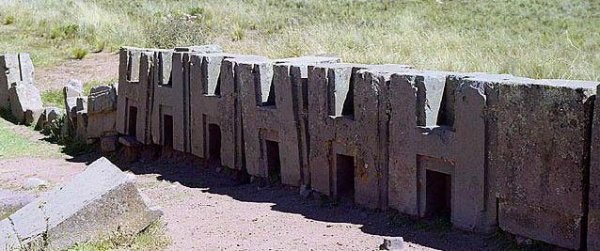 Ряд одинаковых строительных элементов, стоящих рядом друг с другом. Высота каждого около 1,5 метра.