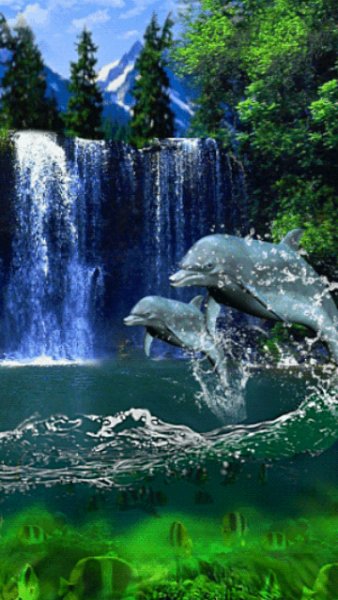 Супер красивый фон природы отличная анимация водопад дельфины все четко завораживает