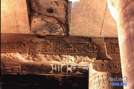 Описание: Исследователи предполагают, что в верхнем левом углу изображения - вертолет или самолет типа "Сесна"; правее мог бы быть катер или подводная лодка. Ниже - НЛО или дисковидный самолёт).И в самом низу изображения - реактивный самолёт. Намёки на подобные устройства можно найти в некоторых учебниках истории, древней литературе и многих мифах. Согласно этим источникам в далеком прошлом имелись люди, которые умели летать по воздуху и плавать под водой в аппаратах подобных современным.