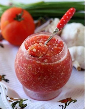 Описание: из хрена с помидорами Ингредиенты: 3 кг помидор 250 гр хрен Чеснок 200 гр Соль 3 ст.л или по вкусу Сахар 1 ст.л или по вкусу Приготовление: Хрен очистить и замочить на 30 минут в чистой воде.Нарезать и прокрутить или на мясорубке или в блендере (с насадкой нож) или в процессоре.Помыть помидоры,нарезать и прокрутить вместе с чесноком.Смешать все ингредиенты,добавить соль,сахар по вкусу,перемешать.Разложить приправу по стерильным банкам,закрыть крышками и хранить в холодильнике.