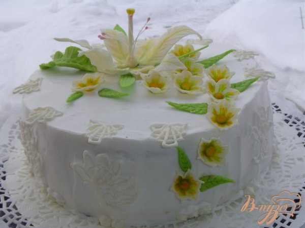 Описание: Ингредиенты:Сгущенное молоко1 банкаяйцо куриное2 шт.мука1 стаканразрыхлитель13гкакао1,5ст.л.Для крема: Яичный желток2 шт.сахар100 гкрахмал50 гВанильный сахарпо вкусумолоко300млОрех грецкий очищенный1 стаканвишня300 гШоколад черный100 гсливки 33%для украшенияУкрашения из мастики и айсингадля украшенияПриготовление:К сгущенному молоку добавляем какао, тщательно перемешиваем, а затем вбиваем яйца и взбиваем.Добавляем муку, разрыхлитель и взбиваем до однородности.На пергаментной бумаге рисуем окружность (у меня 24 см), на нее выкладываем 1,5 ст.л. теста и равномерно распределяем.Выпекаем коржи 6-7 минут при температуре 180 гр. У меня получилось 6 коржей.Пока коржи остывают, готовим крем.Молоко кипятим с половиной сахара и ванилином. Желтки хорошо размешиваем с оставшимся сахаром и крахмалом. Немного молока вливаем в желтковую массу и быстро, тщательно перемешиваем, а затем хорошо размешиваем и медленно выливаем в кипящее молоко. На медленном огне доводим до загустения Мешаем энергично, чтобы крем получился ровный, без комочков.Теперь осталось собрать торт. Первый корж смазываем кремом,сверху кладем вишни (у меня замороженные) и посыпаем измельченными орехами.Следующий корж также смазываем кремом и посыпаем тертым шоколадом. Следующий корж - вишня+орехи, затем - шоколад и т.д. Верхний корж только смазываем кремом.Оставшимся кремом смазываем бока торта и отправляем в холод на 5-6 часов.Когда торт пропитается кремом, покрываем его взбитыми сливками и аккуратно разравниваем.Осталось только украсить торт, я это сделала с помощью элементов из айсинга и цветов из мастики.Приятного аппетита!