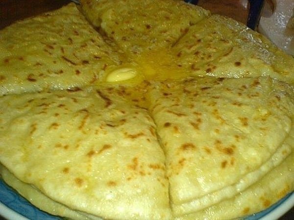 Описание: Вайнахские лепешки "Чяпильгаш"Ингредиенты для "Чепалгаш":-Кефир (сыворотка или простокваша) — 800 мл-Сода пищевая (с верхом) — 1 ч. л.-Мука пшеничная-Соль (с верхом) — 1 ч. л.-Творог (домашний, не соленый) — 800 г-Яйцо куриное — 2 шт-Лук зеленый — 1 пуч.-Соль (по вкусу)-Масло сливочное — 400 гВ большую чашку просеять муку, сделать воронку и насыпать 1 ч.л. соли.В тёплый кефир добавить 1 ч.л.соды с верхом, перемешать.Вылить в муку и замесить рукой мягкое тесто.Тесто накрыть полотенцем и оставить отдыхать минут на 20-30.Займёмся начинкой. Творог (не соленый или слабосоленый; если творог солёный, то его надо будет залить теплой кипяченной водой и оставить на 1 час или больше, а затем отжать) растереть, добавить яйца, соль по-вкусу и порезанный зеленый лук (чем больше лука, тем вкуснее начинка).Тесто разделить на небольшие шарики - 10-12 штук.Расплющить до 1 см толщиной.Выложить на середину 2,5 ст.л. начинки.Края защипать узелком над начинкой, формируя как бы шарик с начинкой внутри.Взять шарик, раскатать скалкой (если тесто рвётся, ничего страшного)и положить на сухую, разогретую сковороду и сразу же накрыть крышкой. Огонь сделать средним. Жарить лепешки по 2-2,5 минуте на одной стороне, снять крышку, перевернуть на другую сторону, но уже без крышки на 2-2,5 мин.Готовые лепешки выложить на тарелку, накрыть полотенцем. Можно сложить в кастрюльку с крышкой.Когда пожарится последняя лепёшка, сковороду помыть, добавить воду и снова на огонь, пока вода не станет горячей. Берем лепёшку, окунаем в горячую воду с двух сторон.И кладём на смазанный растопленным сливочным маслом разнос. Саму лепёшку смазать 2-3 ст.л. слив.масла и так поступить со всеми лепёшками.Готовые лепёшки разрезать на сегменты. Подавать горячими со свежезаваренным чаем. Лепешки после промазывания маслом, получаются очень мягкими и нежными, кушать одно удовольствие!Всем приятного аппетита!!!