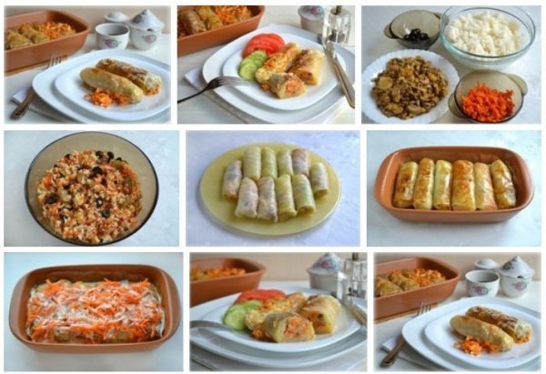 Описание: Постные голубцы с рисомИнгредиенты:Капуста белокочанная - 1 кочанРис - 250 гШампиньоны (маринованные) - 400 гЛук-порей (крупный) - 1 шт.Морковь (средняя) - 2 шт.Оливки - 100 гМайонез (постный) - 100 гСоль - по вкусуПриправы (для грибов) - по вкусуПриготовление:1. У капустного вилка вырезать сердцевину, опустить его в кипящую подсоленную воду и варить пару минут, снять верхние листья. Так постепенно снимать листья с вилка и выкладывать на тарелку остывать.2. Рис отварить.3. Шампиньоны обжарить с луком, в самом конце добавить приправу для грибов.4. Морковь натереть на крупной терке, обжарить до золотистого цвета.5. Нарезать оливки кольцами.6. Все иингредиенты соединить и хорошо перемешать.7. Завернуть начинку в листья капусты.8. Слегка обжарить голубцы и уложить в форму для тушеня9. Сверху уложить натертую морковь и полить постным майонезом. Если он густой, развести его водой.10. Тушить в духовке при 200 градусах минут 20.11. Подавать горячими.