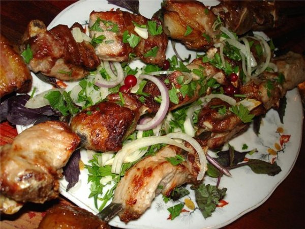 Описание: Друзья, этот вид шашлыка я готовил очень много раз! Рецепт шашлыка настолько прост, что приготовить его, наверняка, сможет и человек далёкий от тонкостей кулинарии. К тому же шашлык в этом виде приготовления получается очень и очень вкусным. По-этому, если вы решили отдохнуть на природе, а готовить особо не умеете, этот вид шашлыка как раз для вас! НачнёмИнгредиенты для блюда шашлык в маринаде из лука и лимона:Свиной ошеек 1 кг.Большие луковицы 4 шт.Половинка лимонаСоль, перецПаприкаУкропНачинаем готовить шашлык в маринаде из лука и лимона:Мясо нарезаем средними кусочкамиЛук и лимон пропускаем через мясорубку, всё смешиваемДобавляем перец, соль, паприку, укроп и ставим в холод на 9 часовМясо нанизываем на шампуры и жарим над углямиВсё очень просто, наш шашлык готов!Всем хочу пожелать приятного отдыха на природе и, конечно же приятного аппетита!