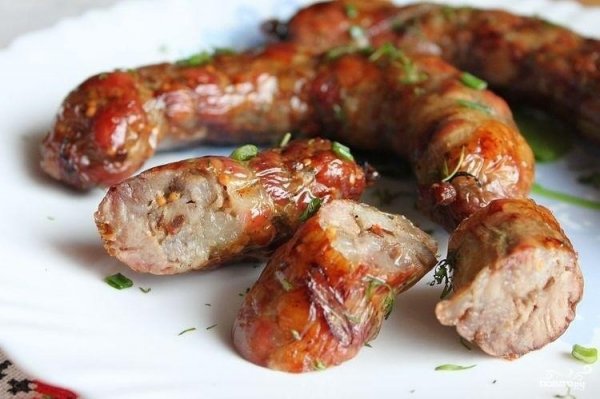Описание: Готовим оболочку:Черева говяжьи 1 упаковка;Соль 4-5 столовых ложек;Уксус;Вода;Говяжьи черева (в упаковке, как правило, около 15 метров) разрезаем на нужное число заготовок, промываем водой, засыпаем солью внутри и снаружи, оставляем на час. Соль смываем, и если остается не слишком приятный запах, устраняем его при помощи слабого раствора уксуса с водой замачивания на час достаточно. Еще раз промываем и проверяем кишку, надувая как шарик.Для фарша:Свинина (лопатка) 1 килограмм;Соль, перец по вкусу;Лавровый лист;Майоран 3-4 чайных ложки;Чеснок 2-3 головки;Х\б шпагат 1 метр.Мелкий фарш не для домашней колбасы. Кусочки мяса с прослойками сала нарезаем сантиметр на сантиметр или пропускаем через крупную сетку на мясорубке.mainСолим, перчим по вкусу, и даем настояться до растворения соли. После опять перчим (лучше крупный помол через ручную мельницу), добавляем мелко нарезанный или давленый чеснок и майоран.Снова перемешиваем и наполняем смесью заранее подготовленные кишки можно вручную, а можно автоматом: поищите в интернет-магазинах специальное приспособление для мясорубок.Наполняем оболочку фаршем, обращая внимание на рекомендации, указанные ранее, перевязываем шпагатом.mainНачинаем проваривать - не забыв перед этим проколоть в кипящей воде с хорошим количеством соли и лавровым листом в течение 40-45 минут. Когда колбаса проварилась, отправляем ее в духовку (180-200 градусов) до появления корочки: переворачивайте, а чтобы не пригорела, выложите противень бумагой для выпечки.Выпеченную колбасу оботрите бумагой, чтобы убрать излишки жира и дайте ей остыть. Обычно готовую колбасу вывешивают для утряски в сухом, холодном помещении часа на 3-4: под собственным весом она окончательно уплотняется и приобретает свой окончательный вид.Приятного Вам аппетита!