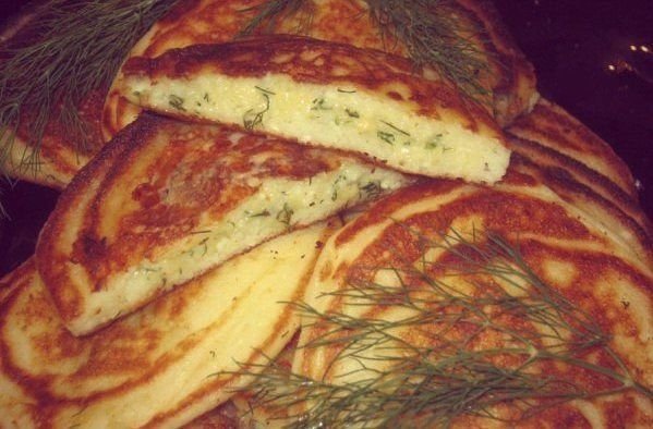Описание: ОЛАДЬИ В СТИЛЕ "ХАЧАПУРИ"Ингредиенты:Для теста: 200 г творога 2 яйца 150 мл кефира 0,5 чайной ложки соли 0,5 чайной ложки соды 3-4 столовых ложек мукиДля начинки: 150 г полутвердого сыра 2 столовые ложки сметаны 2 крупных зубчика чеснока пучок укропаПриготовление:Для теста творог растереть с яйцами. Добавить теплый кефир, соду, соль и муку. Завести густое тесто.Для начинки сыр натереть на мелкой терочке. Добавить мелкорубленные чеснок и укроп. Добавить пару ложек сметаны, все тщательно перемешать.Приступаем к приготовлению оладушек.Сковороду хорошо нагреть, налить растительное масло.Столовой ложкой выкладываем тесто (оно сильно увеличивается, поэтому оставляйте расстояние между оладушками). Из начинки формируем «лепешечку» и выкладываем на тесто.На начинку выкладываем тонкий слой теста.И обжариваем наши оладушки с двух сторон до зарумянивания.Подаем горяченькими.Приятного аппетита!