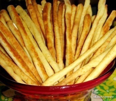 Описание: Сырная соломка за 25 минут Ингредиенты:Сыр твердый (около 150 грамм) — 1 стаканМука пшеничная — 1,5 стаканаМасло сливочное — 80 г Молоко — 4 ст. л. Соль — по вкусуЛимонная цедра (от одного маленького лимона)ТминКунжут (необязательно, но можете добавить по желанию)Приготовление: 1. Сыр и сливочное масло натереть на мелкой терке и тщательно перемешать. (можете положить тмин или кунжут по желанию) 2. Добавить соль, молоко и цедру и ещё раз тщательно перемешать. 3. Затем добавьте всю муку и замесите мягкое и эластичное тесто. 4. Раскатайте тесто в пласт, толщиной 0,5 см, нарежьте его на полосочки и каждую полосочку скатайте пальчиками в трубочку. 5. Уложите их на пергаментную бумагу и выпекайте 15 минут при 180 градусах, до золотистого цвета.6. Получится примерно 45 палочек.