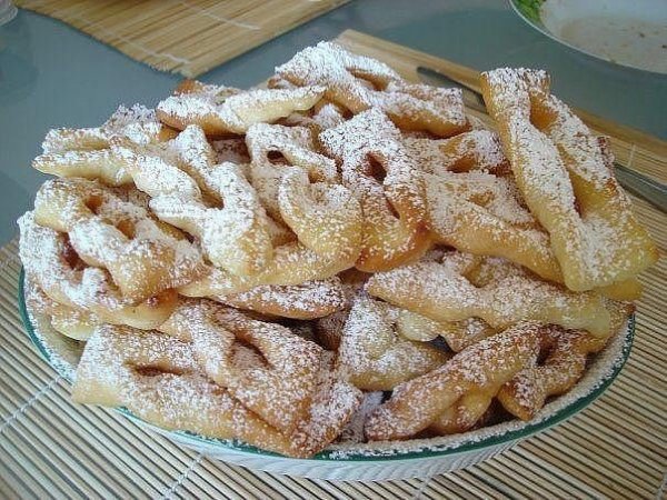 Описание: Хворост с пряностями. ДЛЯ ТЕСТА: 5 желтков, 1 яйцо целиком, 1 ст. ложку сахара, 5 ст. ложек густых сливок,цедру с одного лимона, горсть миндаля, 1/2 ч. ложки кардамона и столько муки, чтобы получилось тесто, как для хвороста.Готовим:Насыпьте на стол горку муки, сделайте в ней углубление. Желтки, яйцо, сливки и сахар тщательно взбейте в пену. Затем добавьте мелко истолченный миндаль, порошок кардамона и лимонную цедру, перемешайте и потихоньку вливайте смесь в мучную ямку и осторожно смешивайте с мукой, не допуская перелива жидкости за бортик углубления. Тесто замесите не слишком крутое, оно должно быть мягким и эластичным. А вот теперь самый ответственный момент – раскатать тесто так тонко, чтобы оно почти просвечивало, было бы с толщину пергамента. А теперь вырезайте различные фигурки, напоминающие оленьи рога!Опускайте в кипящий фритюр, обжаривайте с двух сторон до золотистого цвета и вынимайте шумовкой на блюдо. Охлажденный хворост обсыпьте через ситечко сахарной пудрой.Приятного аппетита!