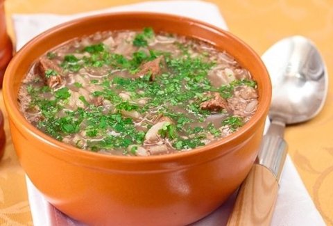 Описание: Друзья, кулинарный рецепт супа харчо, который я хотел бы представить вашему вниманию, знаком мне с самого детства. Это знаменитое и очень вкусное блюдо, которое относится к шедеврам Грузинской кухни, всегда любил готовить мой дядя. Поэтому мне этот рецепт очень хорошо знаком и близок! Готовить суп харчо очень легко, а времени потребуется немного. Давайте посмотрим, как приготовить суп харчоИнгредиенты для супа харчо:Грудинка (баранина или говядина) - 600 гр.Вода - 2,5 литраРис - 1 стаканМорковь - 2 шт.Луковицы - 2-3 шт.Приправа (типа хмели-сунели) - 1 чайная ложкаКорень петрушки - 1 шт.Томатный соус - 3 стол. ложкиЧеснок - 3-4 зубчикаЧёрный перец (горошком) - 6-8 шт.Красный перец (молотый) - 0,5 чайной ложкиЛавровый лист - 3-4 шт.Петрушка - 1 пучокКиндза, соль, перец - по вкусуКак приготовить суп харчо:1. Берём грудинку и нарезаем её небольшими кусочками, после чего заливаем холодной водой, солим и варим около 1,5 часа. Обязательно снимаем пену в процессе варки!2. Затем в бульон кладём хорошо промытый рис, пассерованный лук, перец горошком и измельченный корень петрушки.3. За 10 минут до готовности добавляем томатный соус, лавровый лист, хмели-сунели, молотый красный перец и досаливаем по вкусу.4. Варим ещё 5 минут, после чего кладём измельчённый чеснок, рубленую зелень киндзы, петрушки и снимаем с огня.Теперь наш суп харчо готов! Я желаю всем приготовившим этот вкусный суп насладиться его эксклюзивными вкусовыми качествами!Всем желаю приятного аппетита!