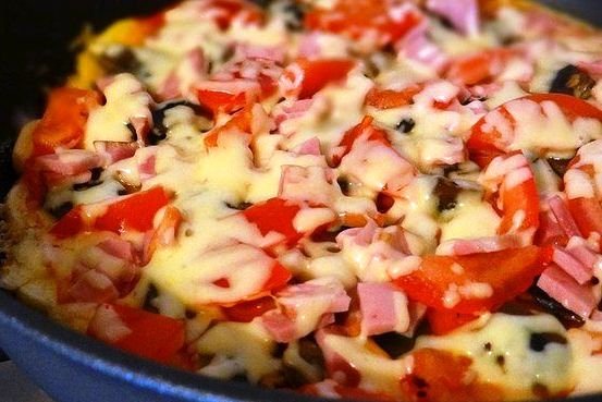 Описание: Друзья, хочу предложить вашему вниманию рецепт пиццы на сковороде быстрого приготовления. Чтобы приготовить быструю пиццу, нужны обычные продукты, всем нам знакомые. Готовится пицца быстро. Но вкус у такого рода быстрой пиццы получается очень необычный и эксклюзивный. Уверен, вы будете приятно удивлены. Теперь давайте рассмотрим, как приготовить пиццу на сковородеИнгредиенты для быстрой пиццы на сковороде:Для тонкого теста:Яйцо - 1 шт.Мука - 2,5 стол. ложкиСметана - 2,5 стол. ложкиМайонез - 1 стол. ложкаСоль - по вкусуРастительное масло для жаркиДля начинки:Помидор - 1 шт.Ветчина - 50 гр.Шампиньоны жаренные - 4 стол. ложкиСыр твёрдый - по вкусуТоматная пастаКонсервированная кукуруза (не обязательно)Как приготовить пиццу на сковороде:1. Для начала, необходимо смешать все ингредиенты для теста, оно должно получиться жидкое.2. Далее подготавливаем начинку. Для этого все ингредиенты нарезаем, а сыр натираем.3. После чего нужно вылить тесто на разогретую сковороду с растительным маслом и тщательно его разровнять.4. Следующим шагом, смазываем соусом, кетчупом или томатной пастой и выкладываем начинку, посыпав тертым сыром.5. И в завершение, накрываем крышкой и обжариваем на среднем огне до тех пор, пока сыр не расплавиться, минут 5-7.Теперь наша пицца на сковороде готова!Всем желаю приятного аппетита!