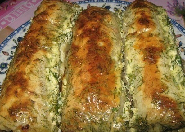 Описание: ИнгредиентыДля теста: Вода - 200 мл. Растительное масло - 2 ст.л. Мука - 200 г. Соль - щепотка. Для начинки: Фарш (свинина, говядина) - 500 г. Лук - 2 шт. Морковь - 1 шт. Чеснок - 3 зубчика. Соль, итальянские травы - по вкусу. Для заливки: Сметана не густая - 150 г. Укроп - пучок. Яйца - 2 шт. Сыр - 100 г.Способ приготовленияТесто: Вскипятить воду с маслом. И кипящую воду смешиваем с мукой. Замесить тесто ложкой, затем руками. Отставить тесто в сторону и пока оно остывает, сделаем начинку. Начинка: Лук нарезать полукольцами, морковь натереть на тёрке, обжарить немного и добавить фарш, чеснок. Посолить, добавить специи. Сделать маленький огонь, накрыть крышкой. Дать немного потушиться. Тесто раскатать тонко, выложить начинку, свернуть рулетом. У меня вышло 5 рулетов. Выложить в форму для запекания. Сделать заливку. Укроп мелко нарезать, смешать со сметаной и яйцами. Добавить тёртый сыр. Залить рулеты и поставить в духовку до зарумянивания. Выпекать при температуре 200 градусов примерно 40 минут.Приятного Всем аппетита!
